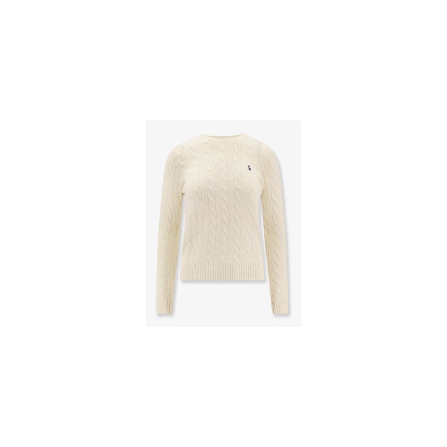 Maglia girocollo a trecce, logo ricamato a filo di cotone blu, slim fit.